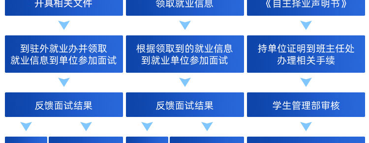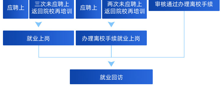 入职前对学生进行就业指导,入职后进行就业回访,关注学生的职场状态。